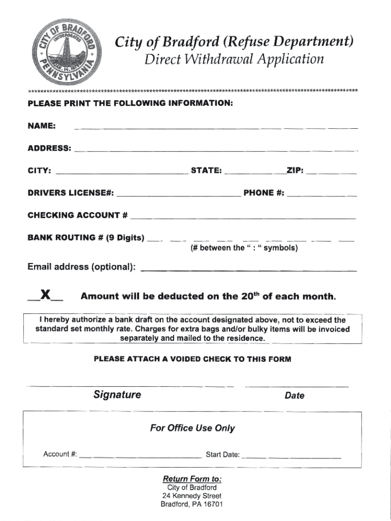 Fill out your city of bradford refuse online with pdfFiller!