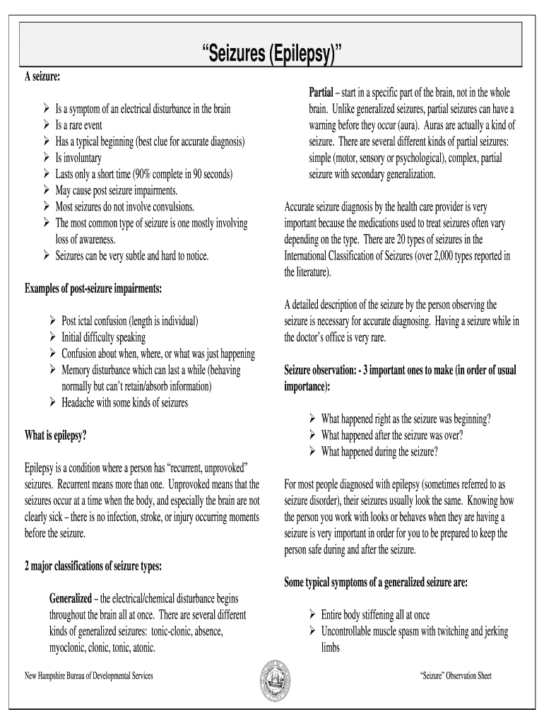 Individuals who have been diagnosed with epilepsy or have witnessed someone having a seizure are required to file seizures epilepsy.