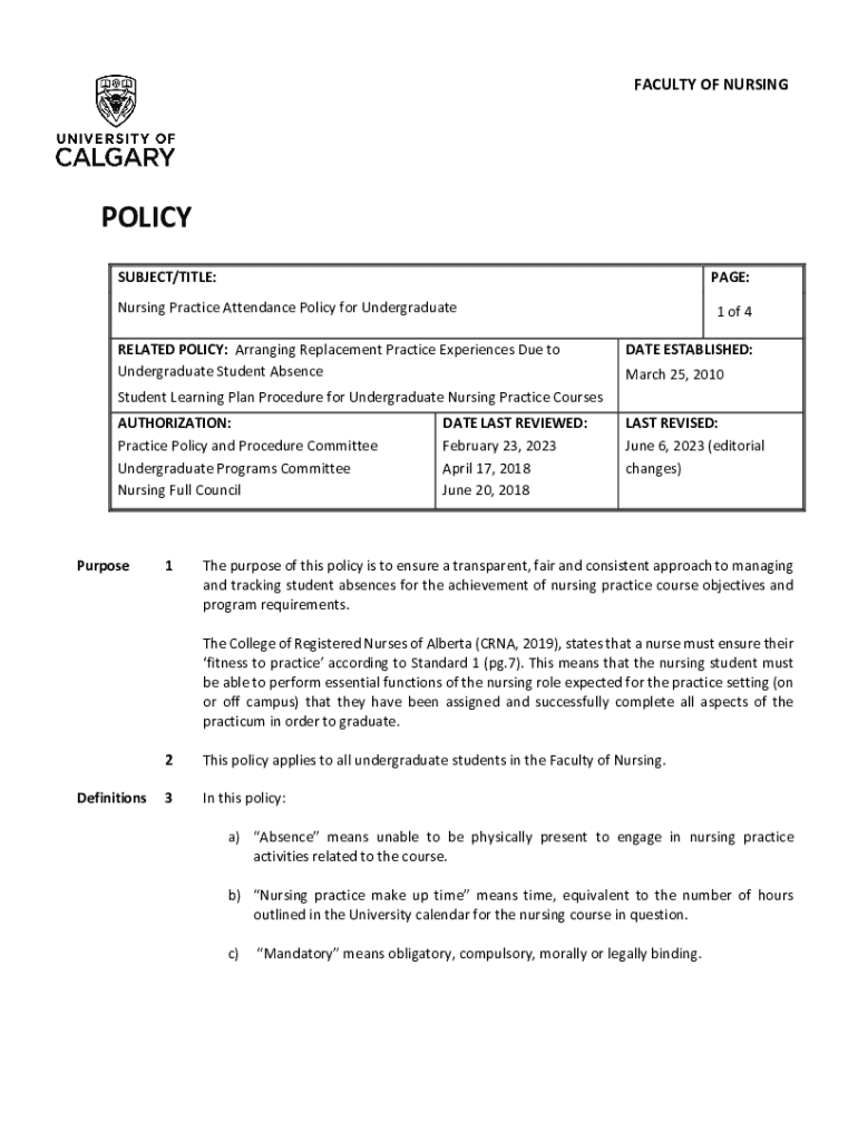 SUBJECT/TITLE:PAGE:Nursing Practice Attendance Policy for Undergraduate
