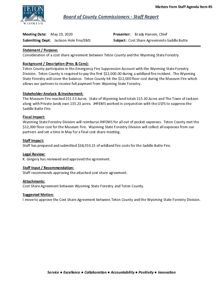 Submitting Dept: Jackson Hole Fire/Presenter: Brady Hansen, Chief