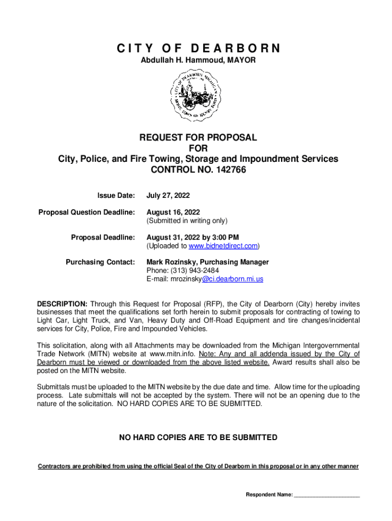Abdullah H. Hammond, MAYORREQUEST FOR PROPOSAL