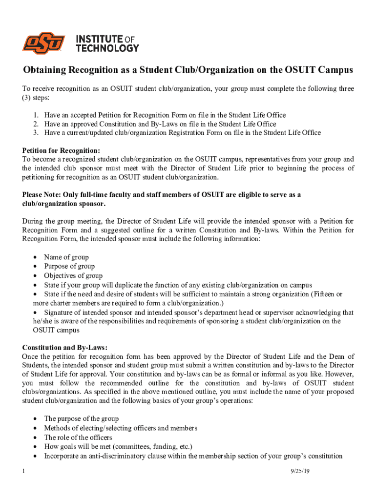 To receive recognition as an SUIT student club/organization, your group must complete the following