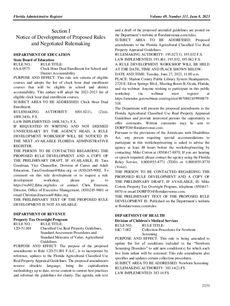 Florida Administrative RegisterSection I Notice of Development of Proposed Rules and Negotiated Rulemaking DEPARTMENT OF EDUCATION State Board of Education RULE NO.: RULE TITLE: 6A6.0575 Clock Hour