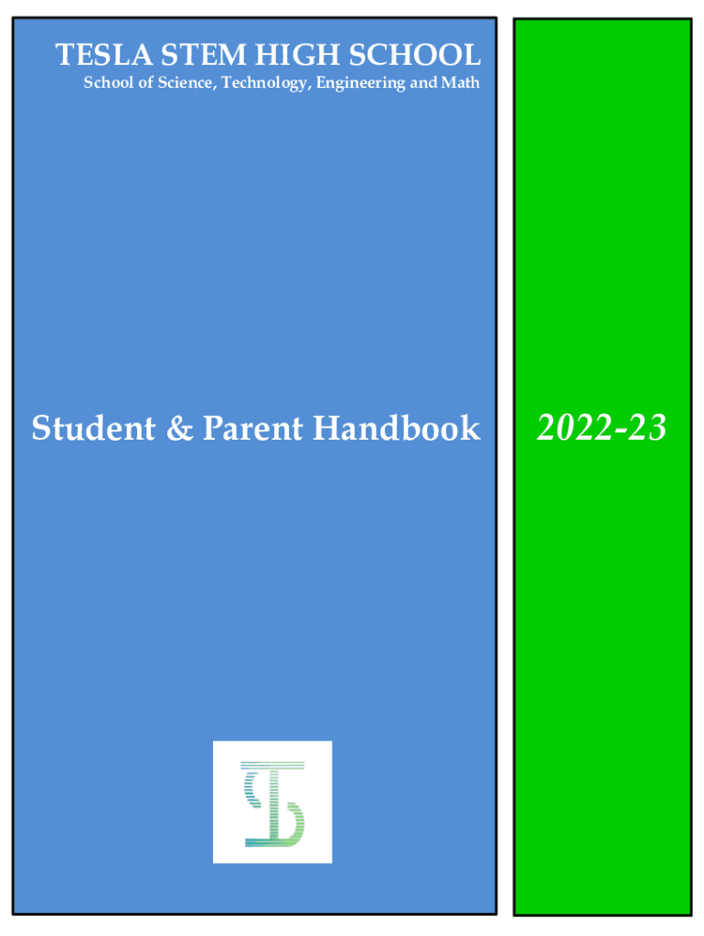 TESLA STEM HIGH SCHOOL of Science, Technology, Engineering and MathStudent & Parent Handbook2022231Dr Jon Holmes, Superintendent