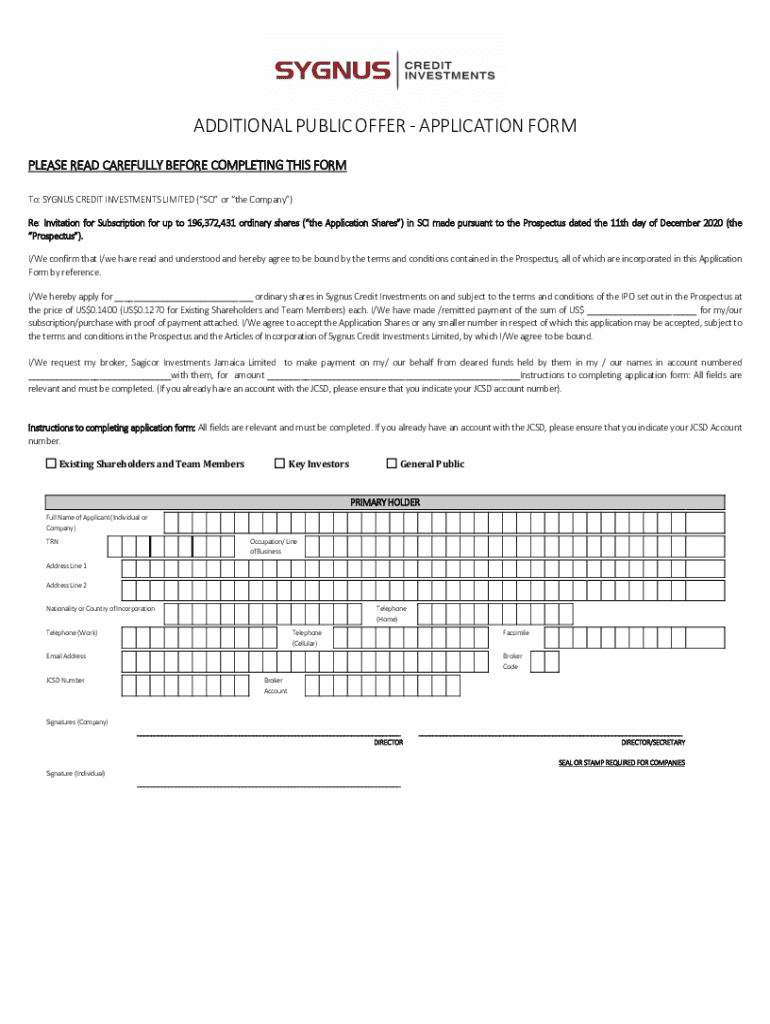 To fill out the Sygnus Credit Investment Limited forms, you need to gather required financial information, follow the provided guidelines, and submit the forms through the designated channels.