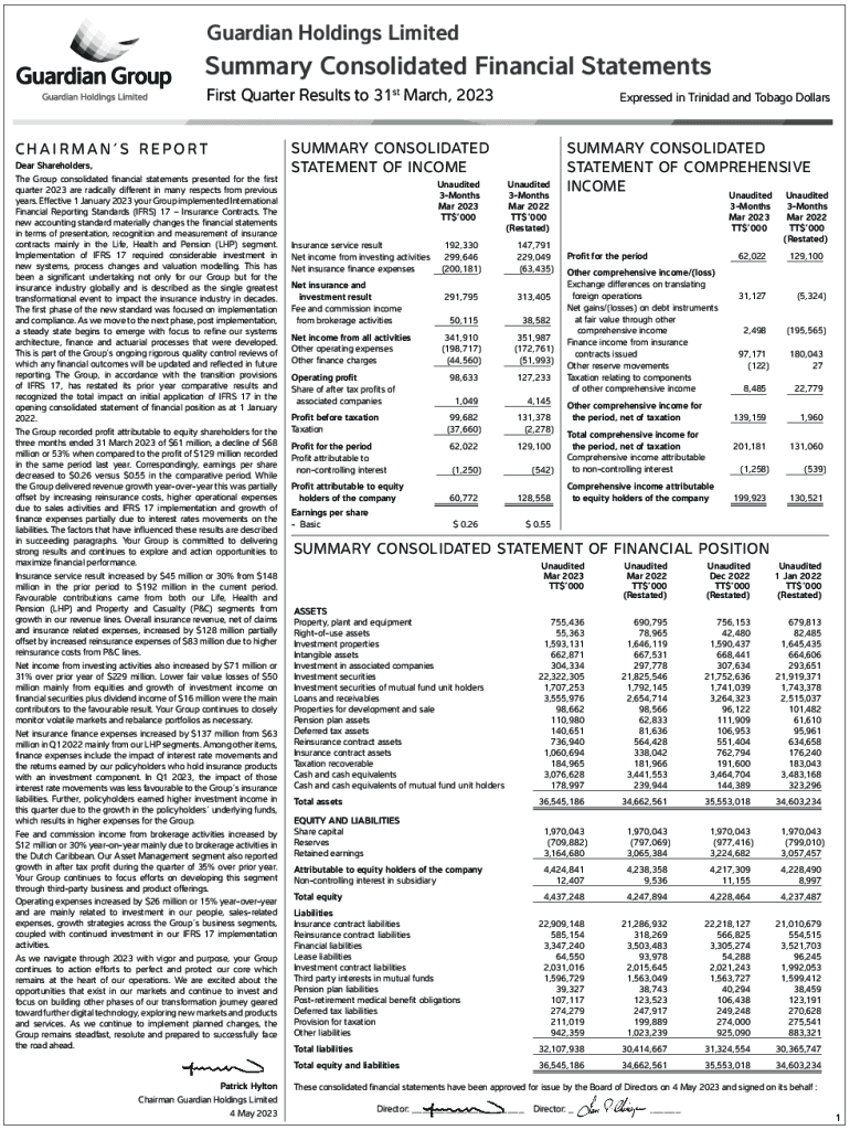 Guardian Holdings LimitedSummary Consolidated Financial Statements