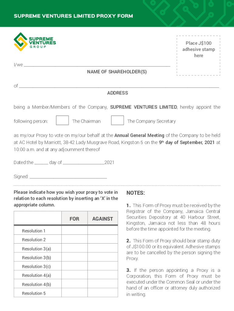 SUPREME VENTURES LIMITED PROXY Workplace J$100