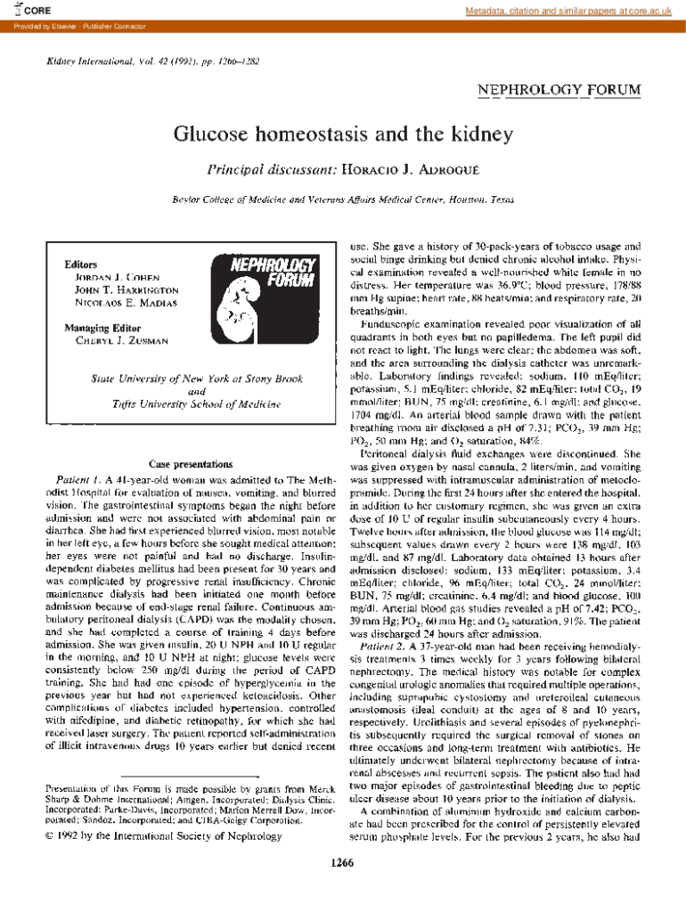 COREMetadata, citation and similar papers at core.ac.unprovided by Elsevier Publisher ConnectorKidney International, Vol. 42 (1992), pp. 12661282NEPHROLOGY FORUMGlucose homeostasis and the kidney