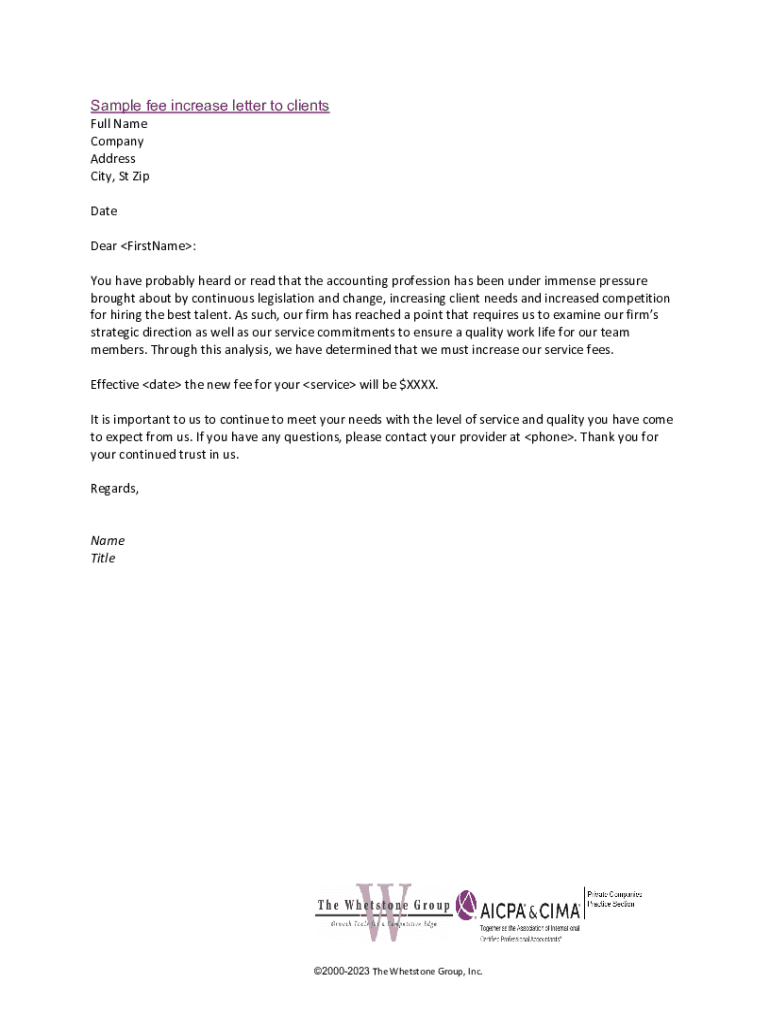 Get the free Accounting Fee Increase Letter: Sample Template & Tips