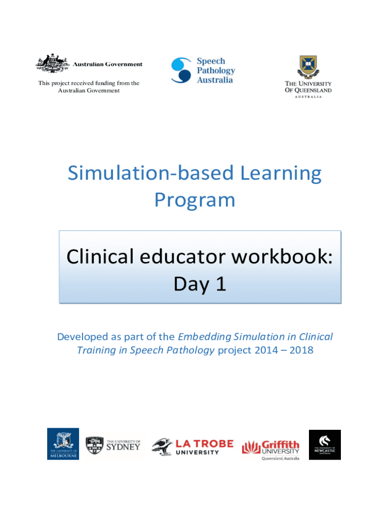 This project received funding from the Australian GovernmentSimulationbased Learning Program Clinical educator workbook: Day 1 Developed as part of the Embedding Simulation in Clinical Training in