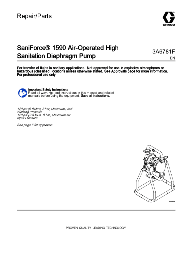 Get the free 3A6781F, SaniForce 1590 Air-Operated High Sanitation Diaphragm Pump, Repair/Parts, E...