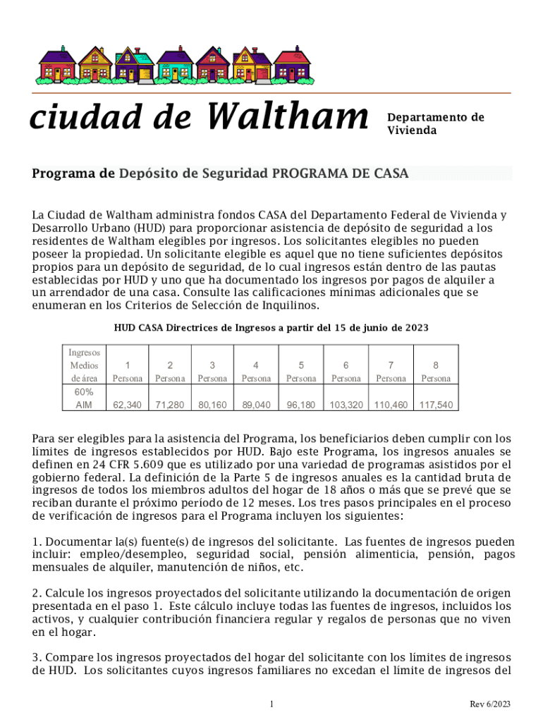 La Ciudad de Waltham administer condos CASA del Department Federal de Vivienda y