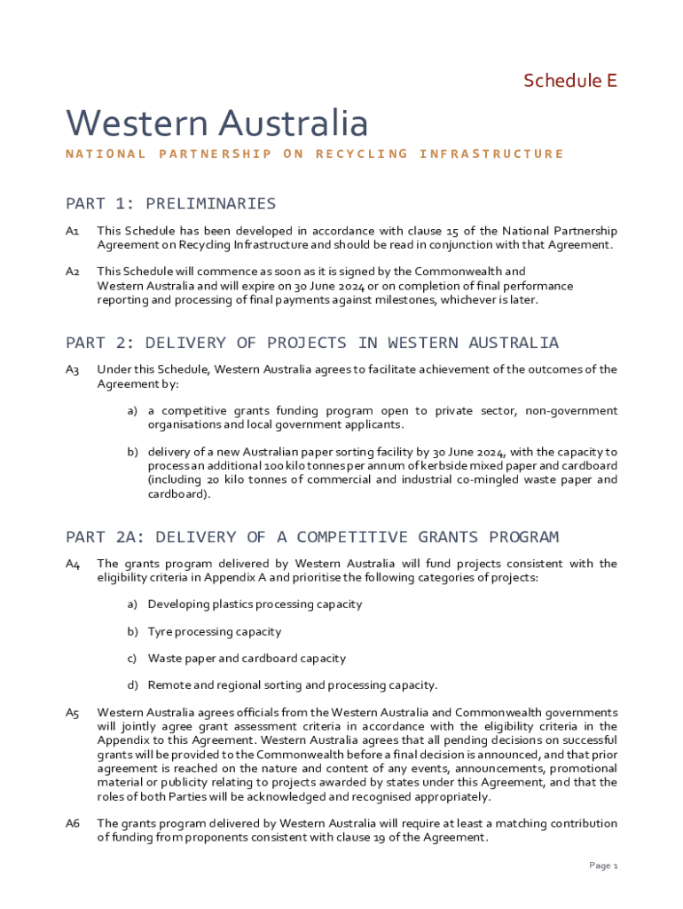 Schedule Western AustraliaNATIONAL PARTNERSHIP ON RECYCLING INFRASTRUCTUREPART 1: PRELIMINARIES
