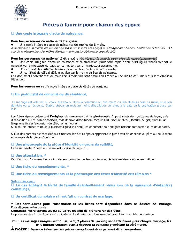 Dossier de mariagePices Fournier pour chain DES pour