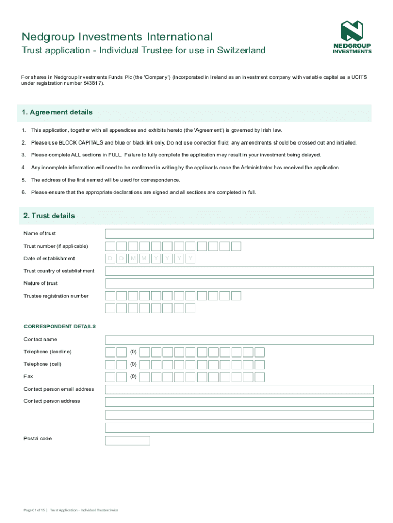 Nedgroup Investments International Trust application Individual Trustee for use in Switzerland For shares in Nedgroup Investments Funds Plc (the Company) (Incorporated in Ireland as an investment