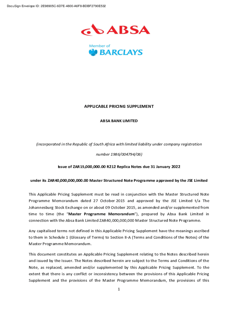 DocuSign Envelope ID: 2E98905C6D7E4800A6F8BDBF2790E532APPLICABLE PRICING SUPPLEMENT BSA BANK LIMITED(incorporated in the Republic of South Africa with limited liability under company registration