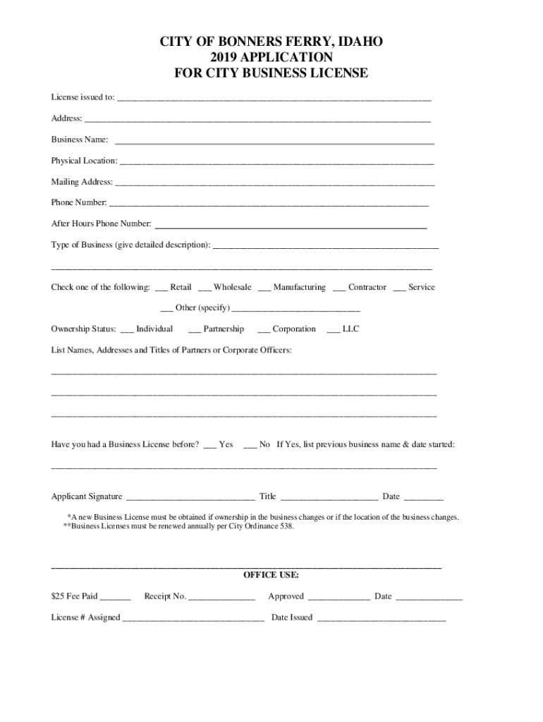 Get the free city business license application bonners ferry, idaho - bonnersferry id