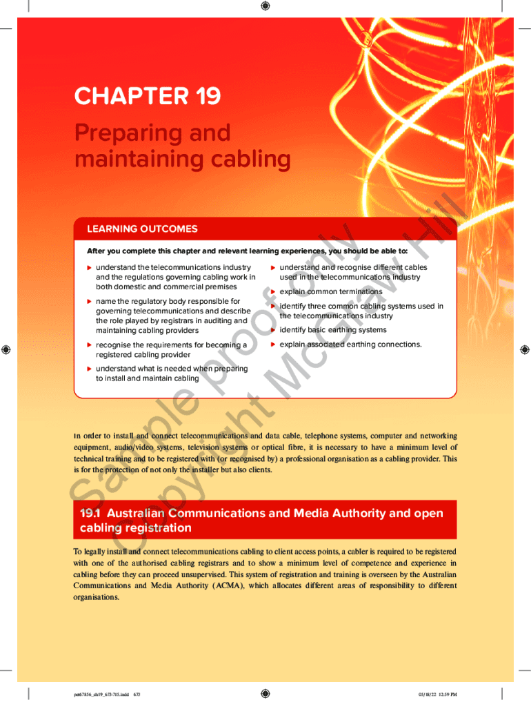 Sa C m op pl yr e p ig ro ht o M fo cG n l ra y w H illCHAPTER 19 Preparing and maintaining cabling LEARNING OUTCOMESAfter you complete this chapter and relevant learning experiences, you should be