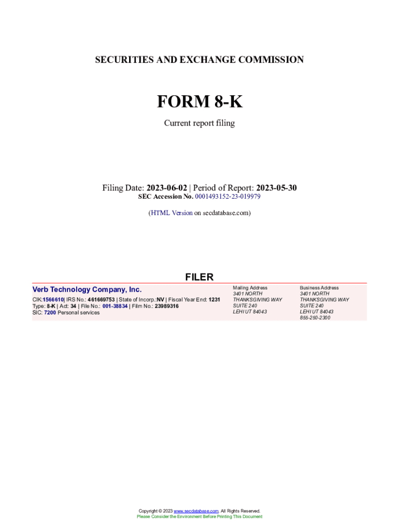 Get the free Verb Technology Company, Inc. Form 8-K Current Event Report Filed 2023-06-02. Access...