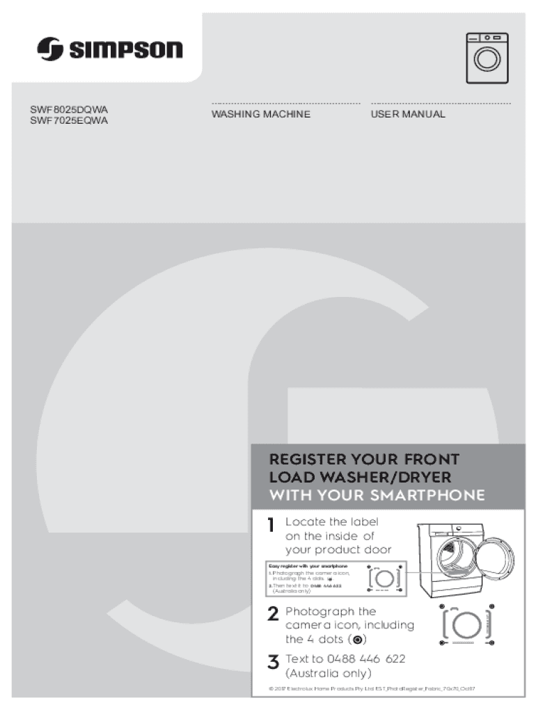 SWF8025DQWA SWF7025EQWA.................................................... ................................................. WASHING MACHINE USER MANUALREGISTER YOUR FRONT LOAD WASHER/DRYER WITH