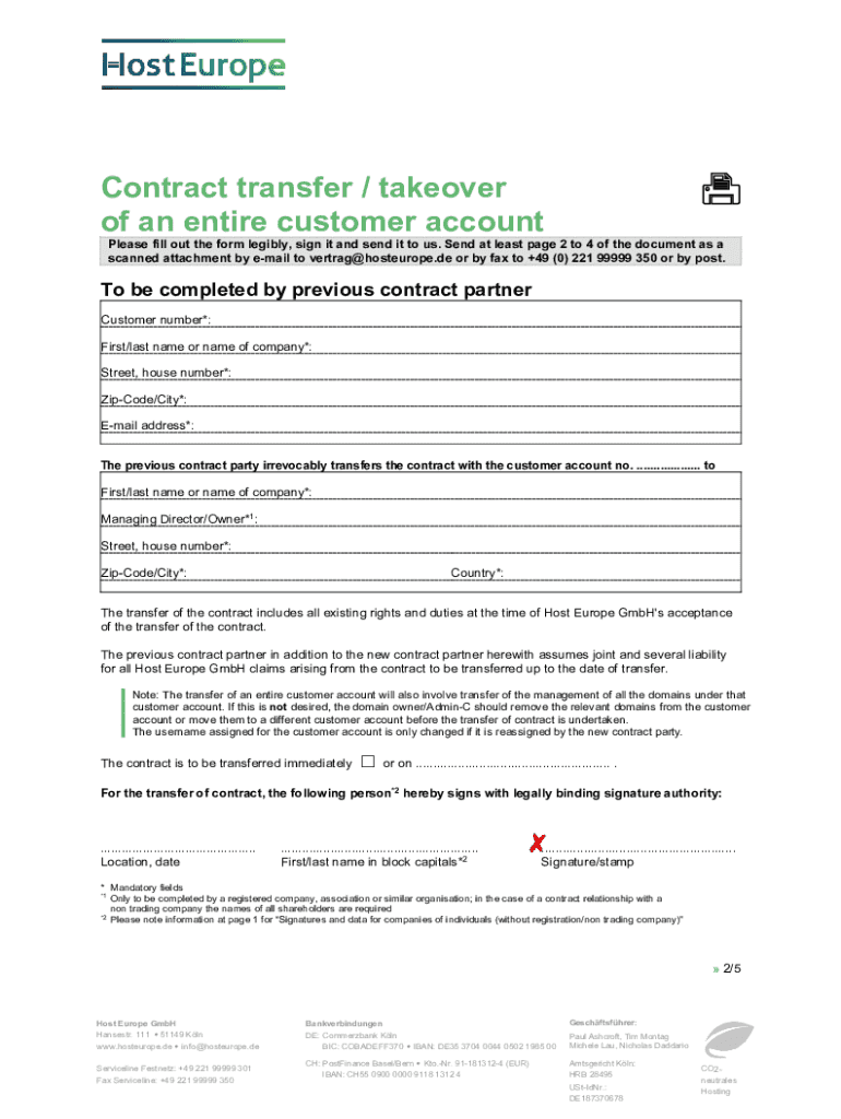 The small print in advance General information CostsFor the contract transfer of an entire customer account, a fee of 50 EUR incl. VAT will be charged to the new contract party. (19 % VAT applies