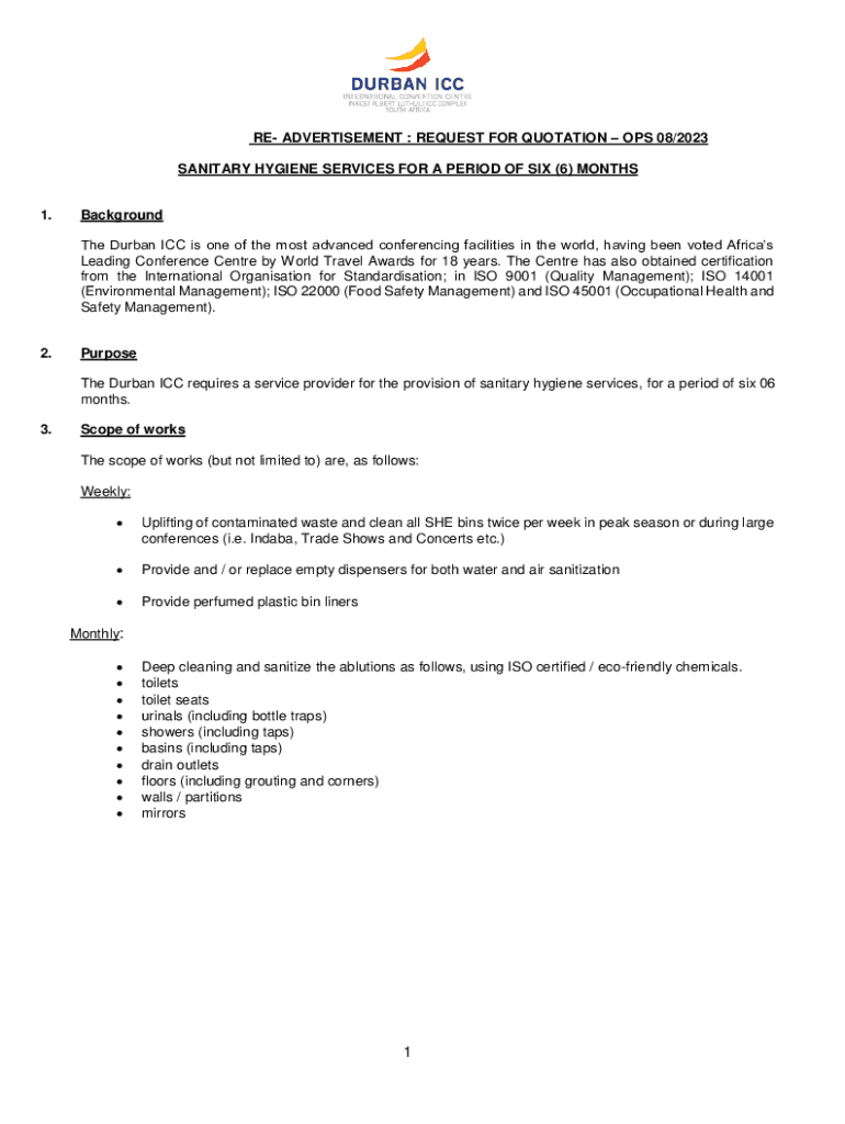 SANITARY HYGIENE SERVICES FOR A PERIOD OF SIX (6) MONTHS1. Background