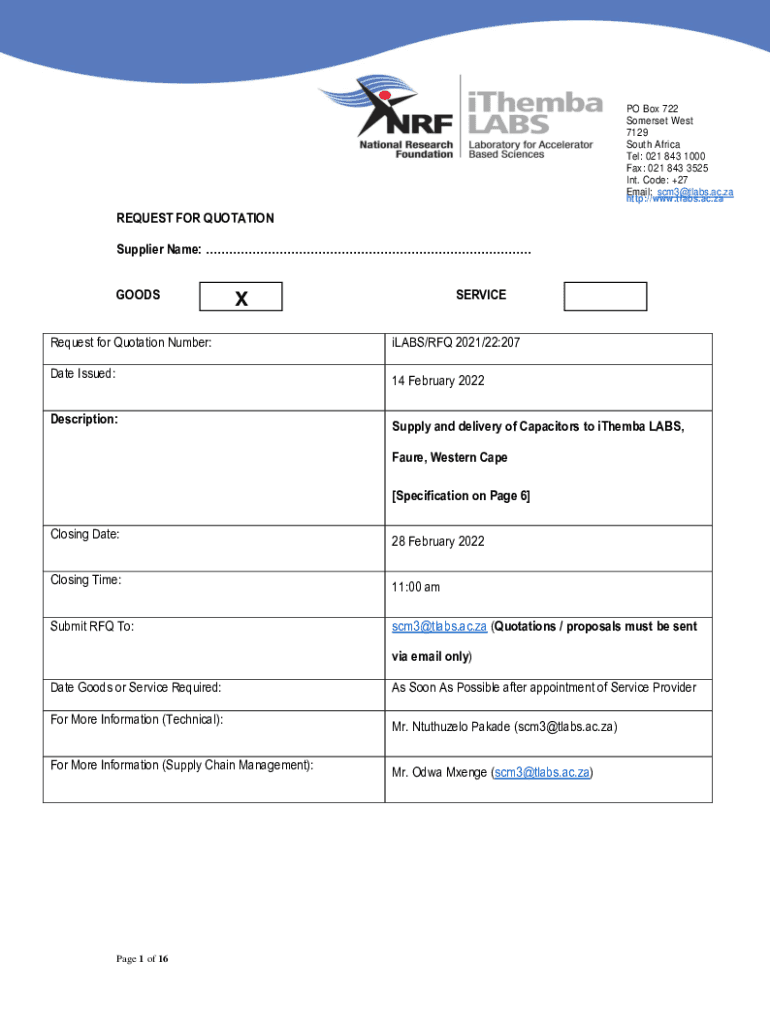 http://www.tlabs.ac.zaREQUEST FOR QUOTATION