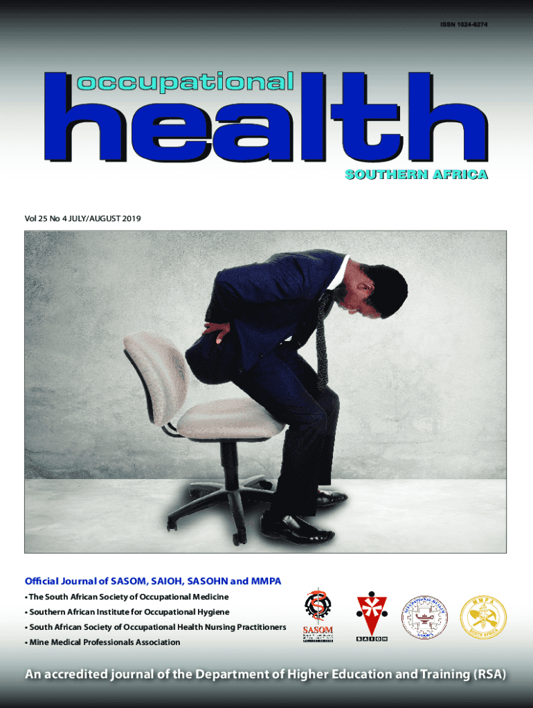 SASOM REPORTVol 25 No 4 JULY/AUGUST 2019Official Journal of SASOM, SAIOH, SASOHN and MMPA The South African Society of Occupational Medicine Southern African Institute for Occupational Hygiene South