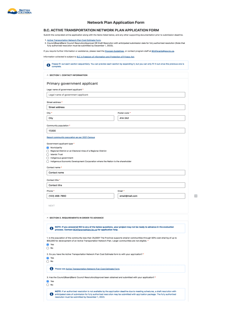 Network Plan Application FormB.C. ACTIVE TRANSPORTATION NETWORK PLAN APPLICATION FORMSubmit the completed online application along with the items listed below, and any other supporting documentation