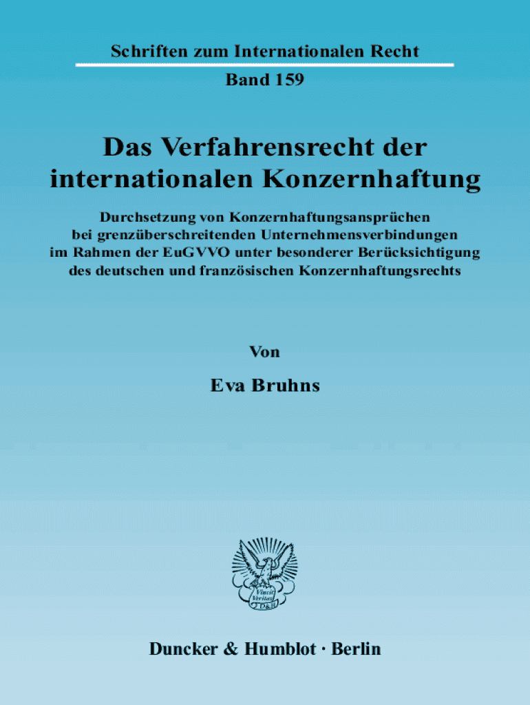 Schriften zum Internationalen Recht Band 159Das Verfahrensrecht der internationalen Konzernhaftung Durchsetzung von Konzernhaftungsansprchen bei grenzberschreitenden Unternehmensverbindungen im Rahmen