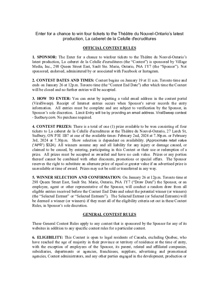 Enter for a chance to win four tickets to the There du NouvelOntarios the latest