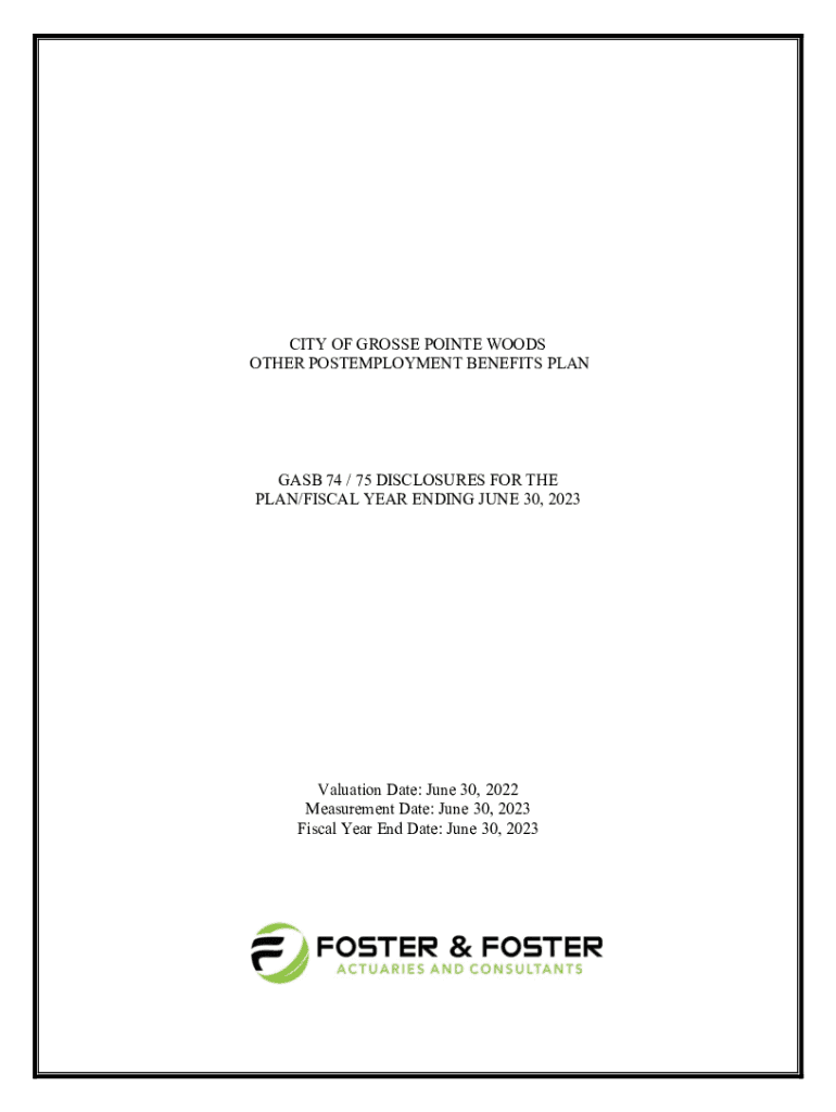 CITY OF GROSSE POINTE WOODS OTHER POSTEMPLOYMENT BENEFITS PLANGASB 74 / 75 DISCLOSURES FOR THE PLAN/FISCAL YEAR ENDING JUNE 30, 2023Valuation Date: June 30, 2022 Measurement Date: June 30, 2023 Fiscal