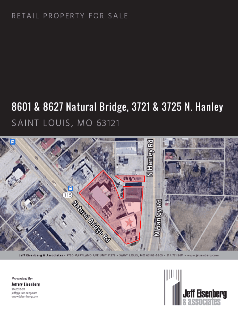 RETAIL PROPERTY FOR SALE8601 & 8627 Natural Bridge, 3721 & 3725 N. Hanley SAINT LOUIS, MO 63121Je ff E is e nb e rg & As s oc iat e s 7750 MARYLAND AVE UNI T 112 72 SAI NT LO UI S, MO 6 310 5 550