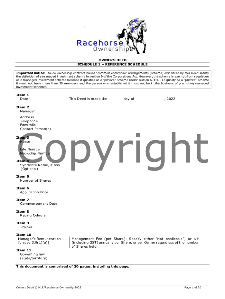 Important notice: The coownership contract based common enterprise arrangements (scheme) evidenced by this Deed satisfy