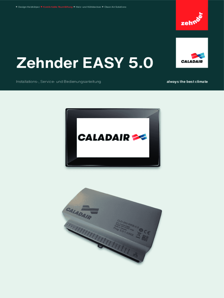 DesignHeizkrperKomfortable RaumlftungHeiz und KhldeckenClean Air SolutionsZehnder EASY 5.0 Installations, Service und Bedienungsanleitungalways the best climateZehnder EASY 5.0Inhalt 1.Darstellung