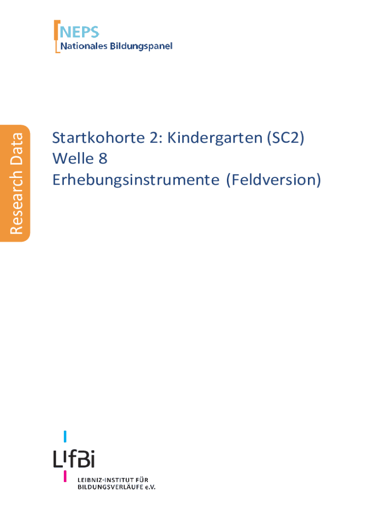 Research DataStartkohorte 2: Kindergarten (SC2) Welle 8 Erhebungsinstrumente (Feldversion)Urherberrechtlich geschtztes Material LeibnizInstitut fr Bildungsverlufe e.V. (LIfBi) Wilhelmsplatz 3, 96047