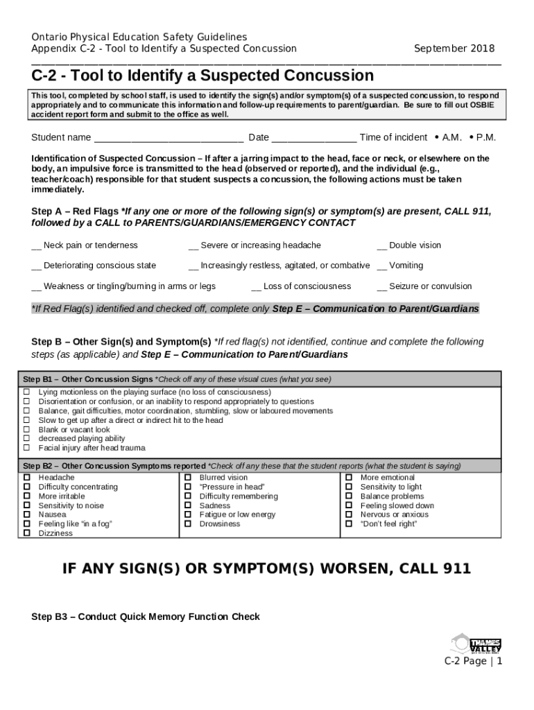 Template Following the Initial Identification of a Suspected Concussion instructions