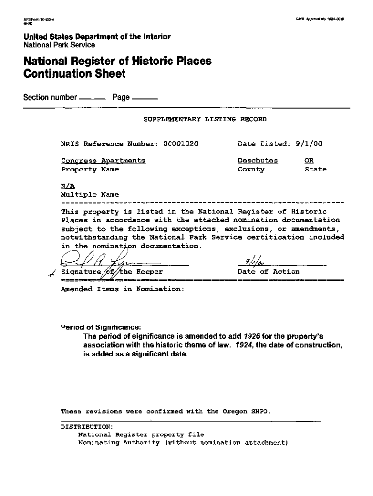 NPS Form 10900aOMB Approval No. 10240018United States Department of the Interior National Park ServiceNational Register of Historic Places Continuation Sheet Section number Page SUPPLEMENTARY LISTING
