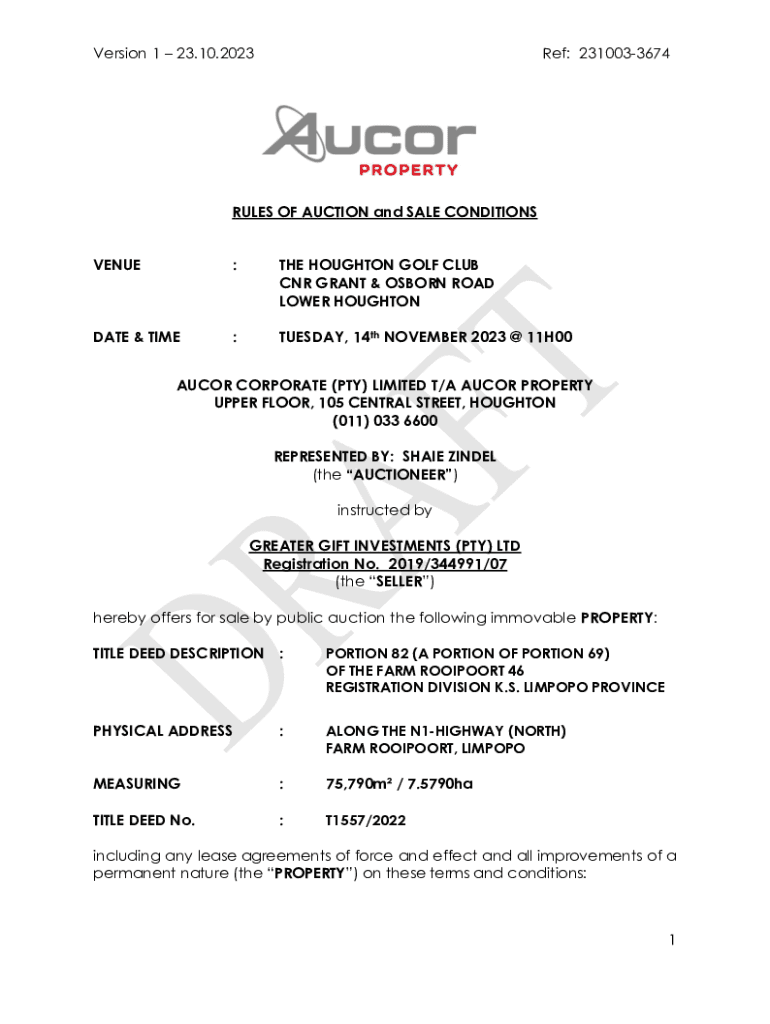 Version 1 23.10.2023Ref: 2310033674RULES OF AUCTION and SALE CONDITIONS