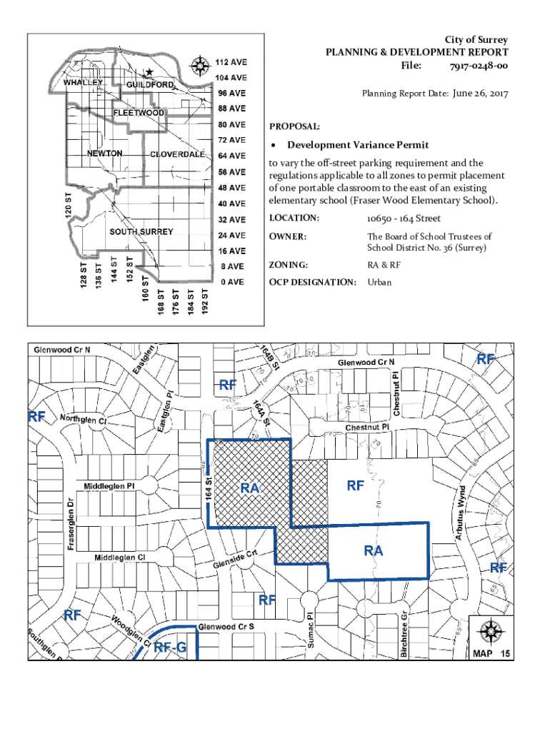City of Surrey PLANNING & DEVELOPMENT REPORT File: 7917024800 Planning Report Date: June 26, 2017PROPOSAL:xDevelopment Variance Permitto vary the offstreet parking requirement and the regulations