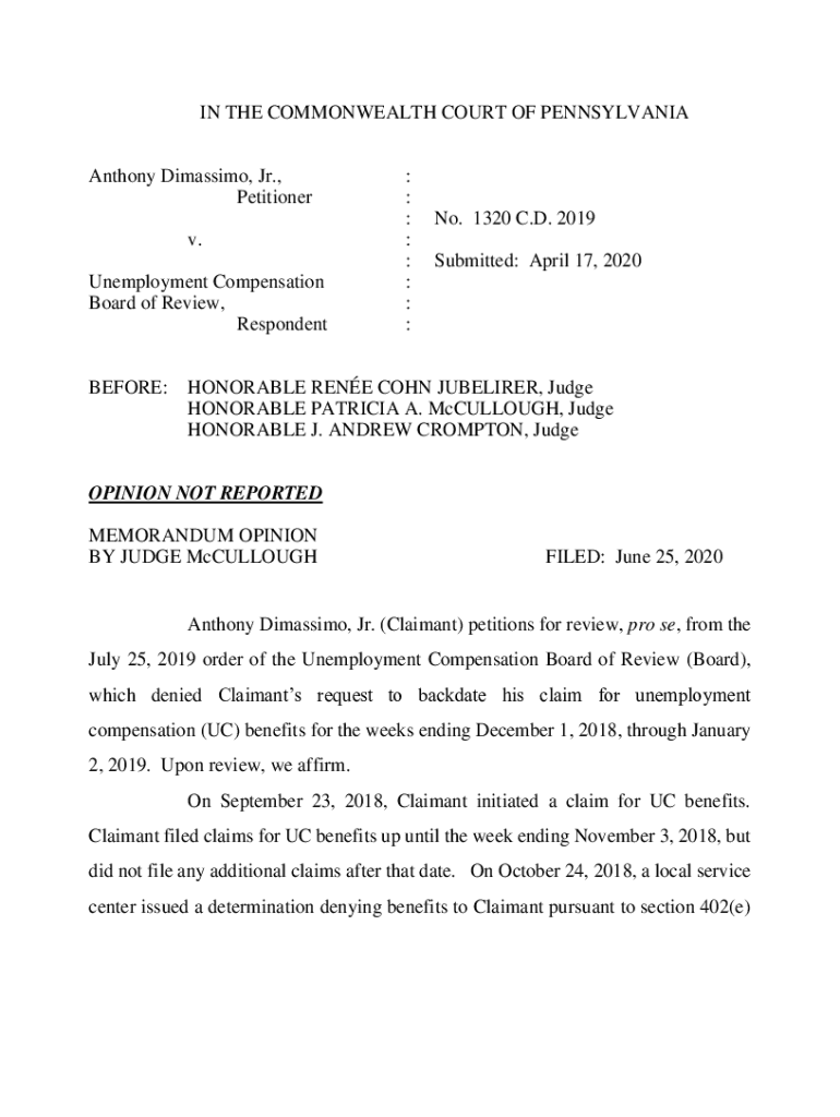 Get the free Dimassimo v. Unemployment Comp. Bd. of Review - Case Law