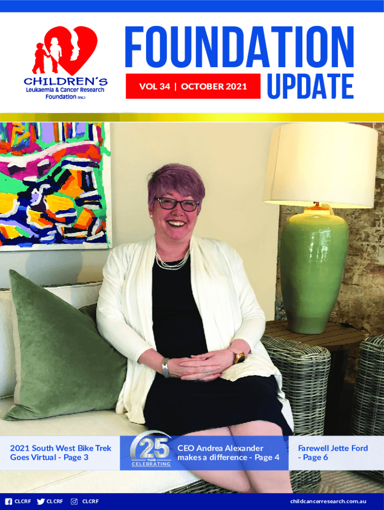 FOUNDATION VOL 34 | OCTOBER 20212021 South West Bike Trek Goes Virtual Page 3CLCRFCLCRFCLCRFC E L E B R AT I N GCEO Andrea Alexander makes a difference Page 4Farewell Jette Ford Page 6childcancerresearch.com.auWELCOMEIn