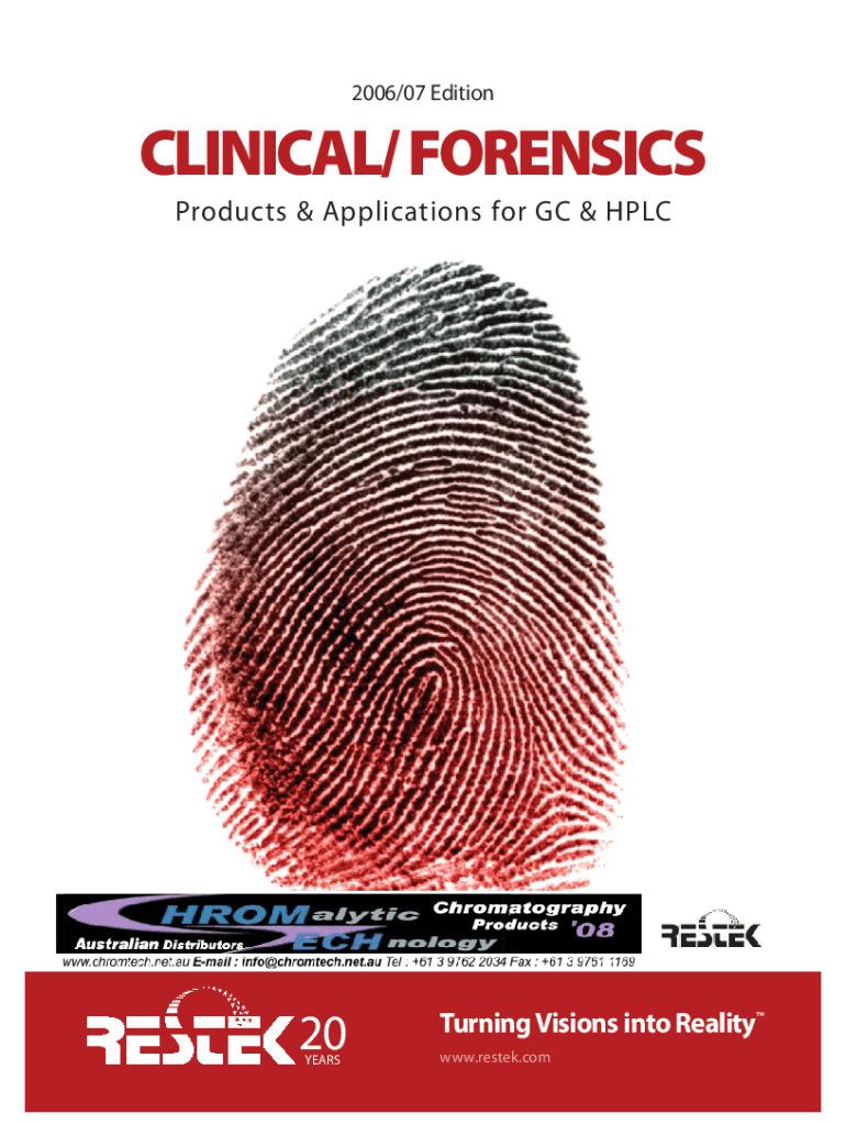 2006/07 EditionCLINICAL/ FORENSICS Products & Applications for GC & HPLC20 YEARSTurning Visions into Reality www.restek.com 8003561688 8143531300Introduction IntroductionTable of Contents:In the clinical