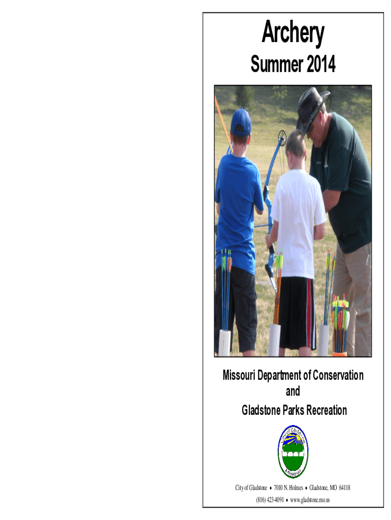 Archery Summer 2014Missouri Department of Conservation and Gladstone Parks RecreationCity of Gladstone 7010 N. Holmes Gladstone, MO 64118 (816) 4234091 www.gladstone.mo.usArchery Gladstone Parks &