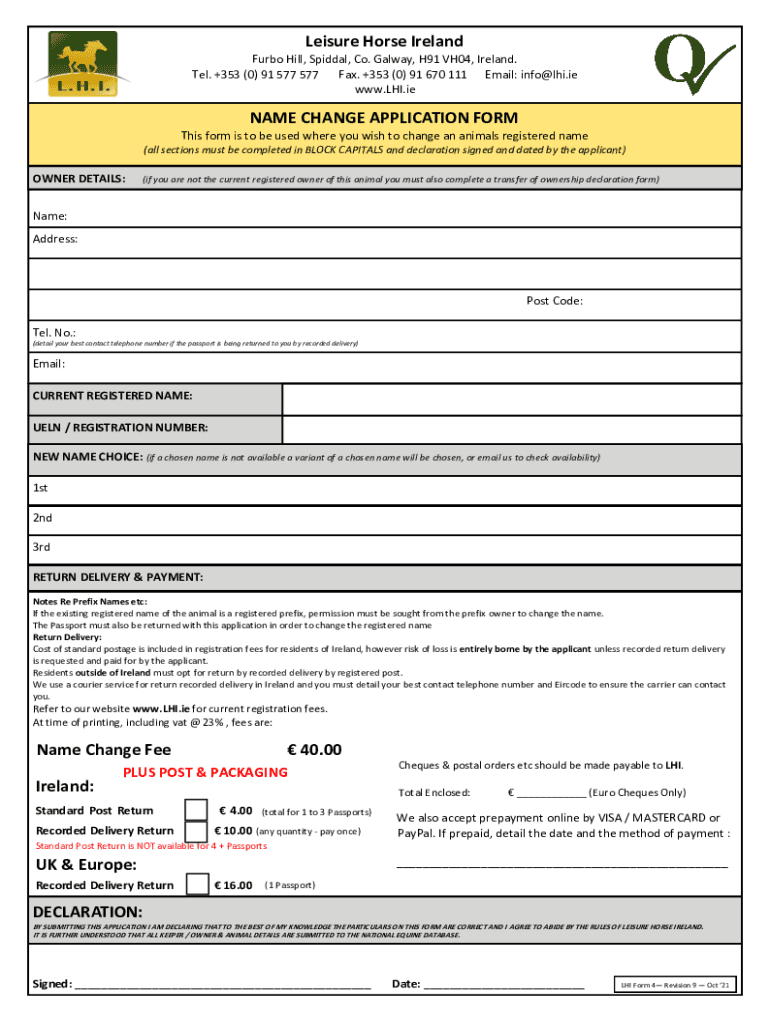 www.LHI.ieNAME CHANGE APPLICATION From