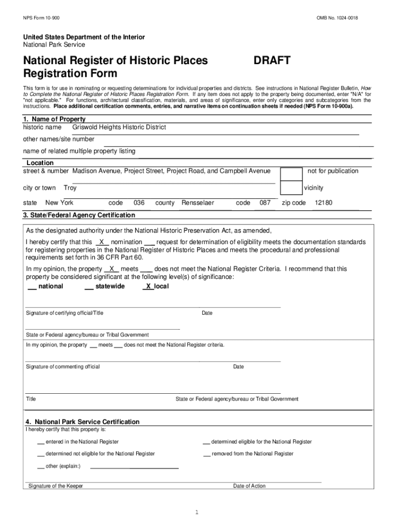 NPS Form 10900OMB No. 10240018United States Department of the Interior National Park ServiceNational Register of Historic Places Registration FormDRAFTThis form is for use in nominating or requesting