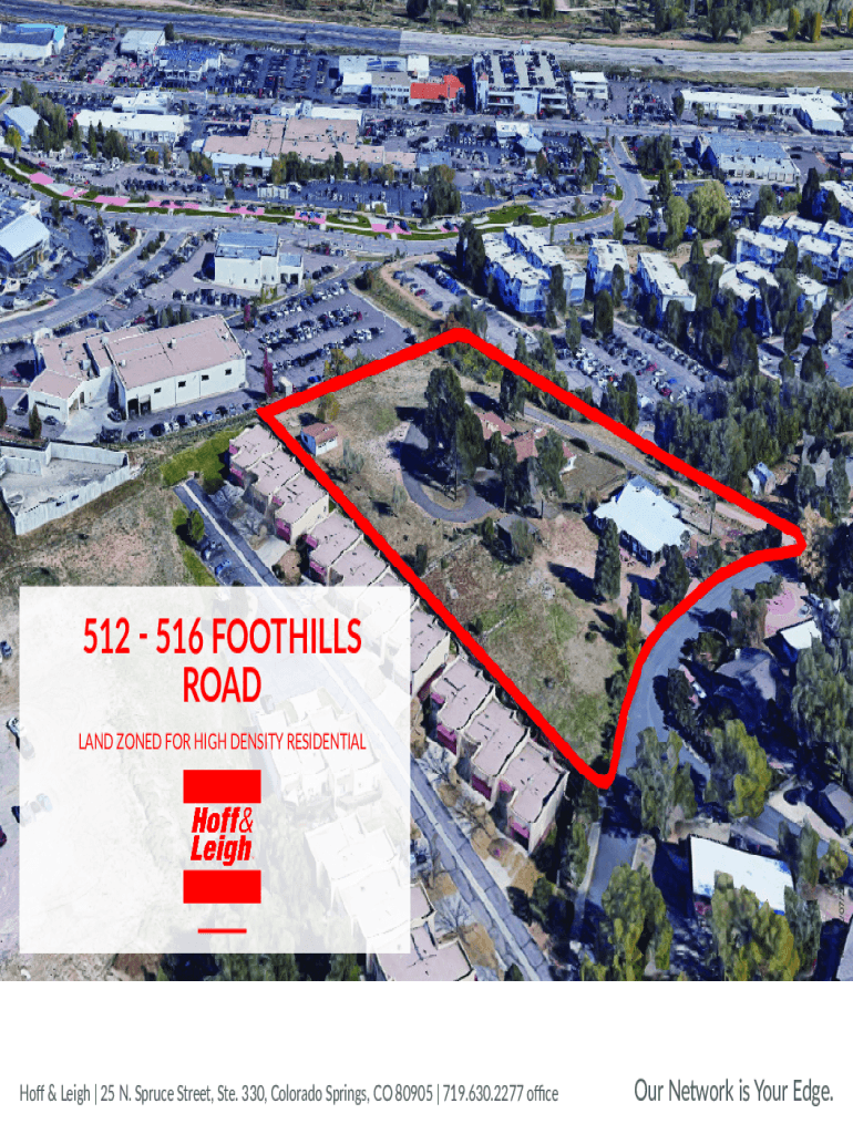 512 516 FOOTHILLS ROADREV. 12/07/22LAND ZONED FOR HIGH DENSITY RESIDENTIALHoff & Leigh | 25 N. Spruce Street, Ste. 330, Colorado Springs, CO 80905 | 719.630.2277 officeOur Network is Your Edge.512516
