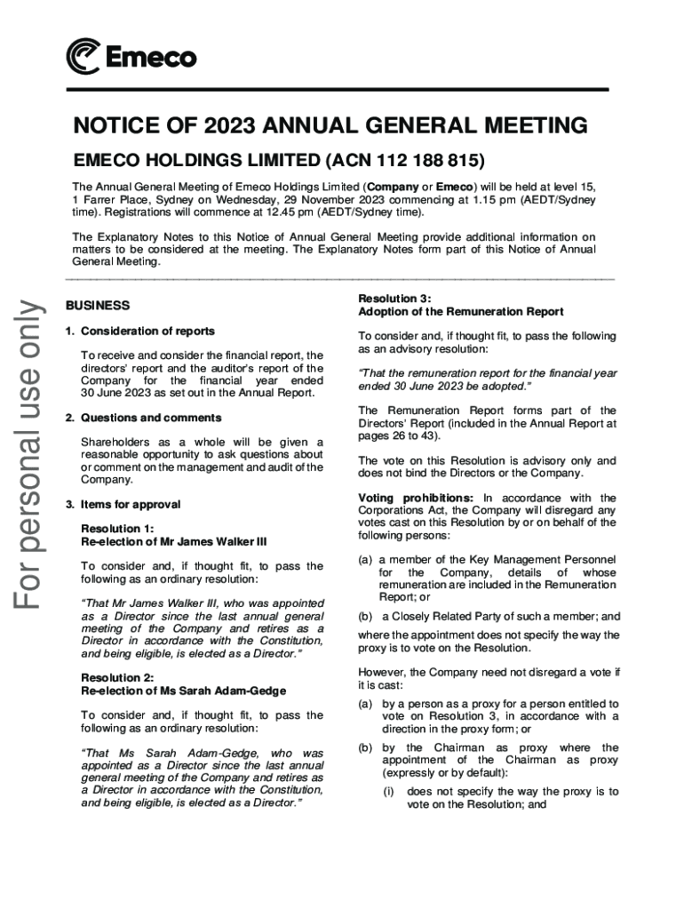 Get the free Notice and Proxy Form Emeco Holdings Limited (ASX