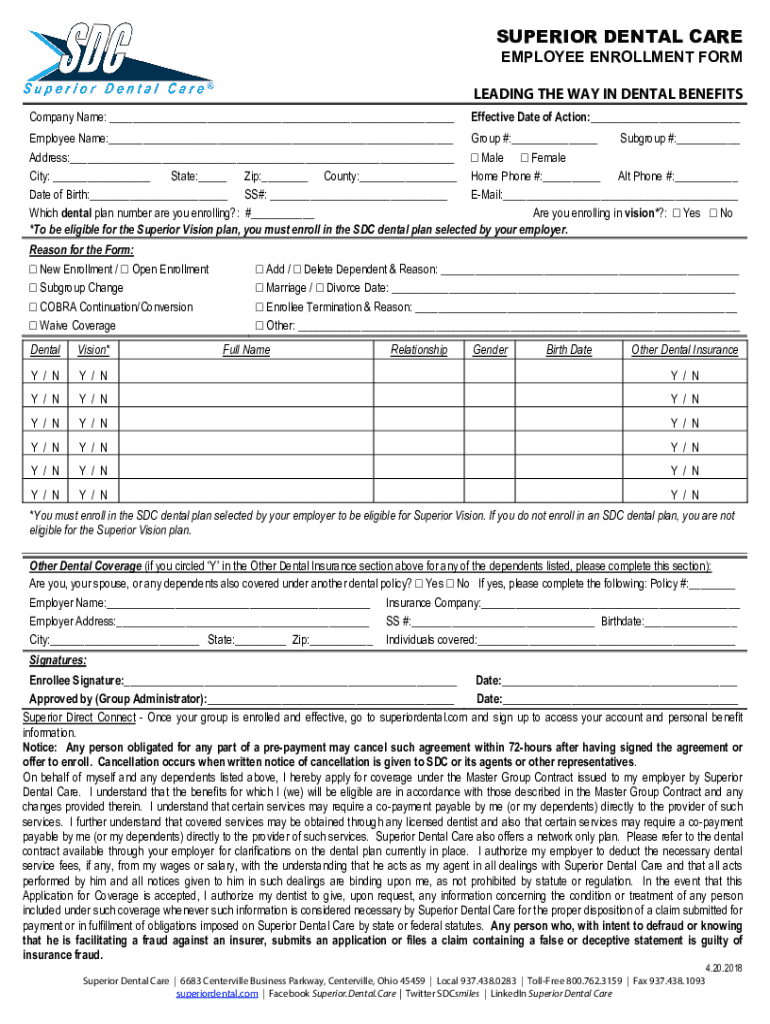 SUPERIOR DENTAL REEMPLOYED ENROLLMENT FORMULATING THE WAY IN DENTAL BENEFITS