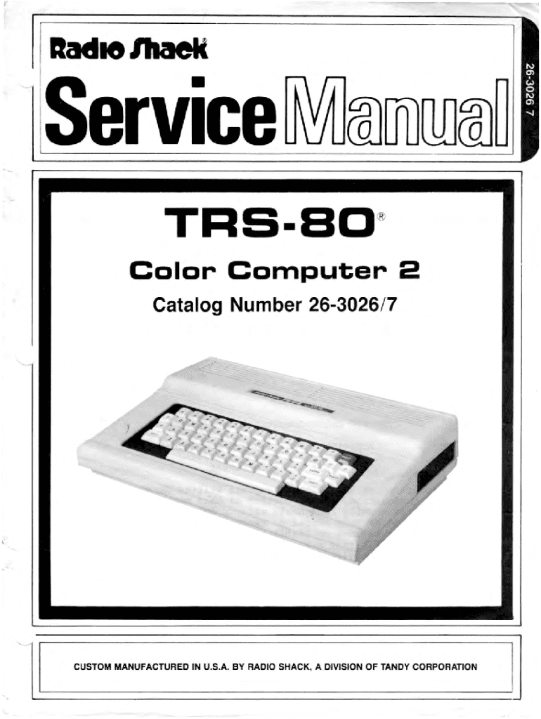 Catalog Number 263026/7CUSTOM MANUFACTURED IN U.S.A. BY RADIO SHACK, A DIVISION OF TANDY CORPORATIONTRS80 TRS80 Color Computer 2 Service Manual